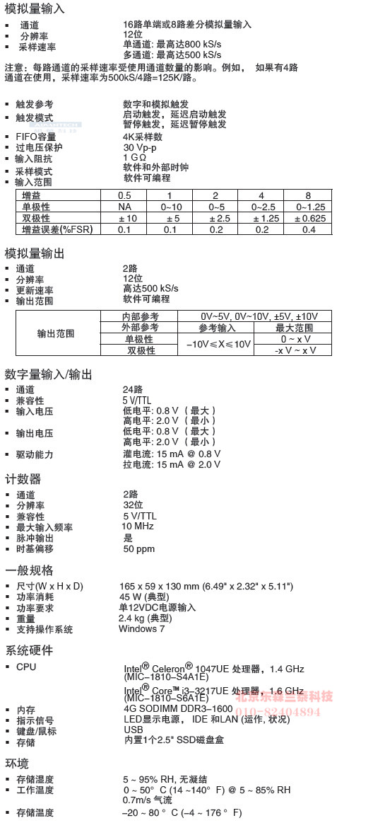 MIC-1810-S4A1E  Intel ® Celeron ® 1047UE 嵌入式电脑+PCIE1810+Adam3968+Pcl10168