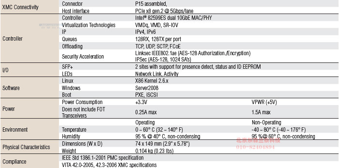 Compliant with VITA 42.0-2005, 42.3-2006 XMC specifications