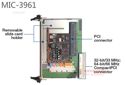 MIC-3961是一个6U的CPCI载板,它可挂载常见的PCI接口卡,占用一个CPCI槽位。有了它,用户可将自己的的32位或64位普通PCI卡连接到CPCI系统中去使用。载板上设计了一个加固插座来保护PCI卡的冲出和震动的环境下正常工作,并且加固插座的位置不会影响PCI卡往CPCI系统的前出口板连接引线。