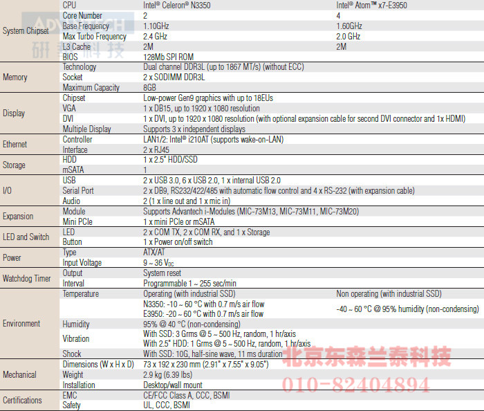 MIC-7300  Intel® Celeron® N3350/Atom™ x7-E3950 processor