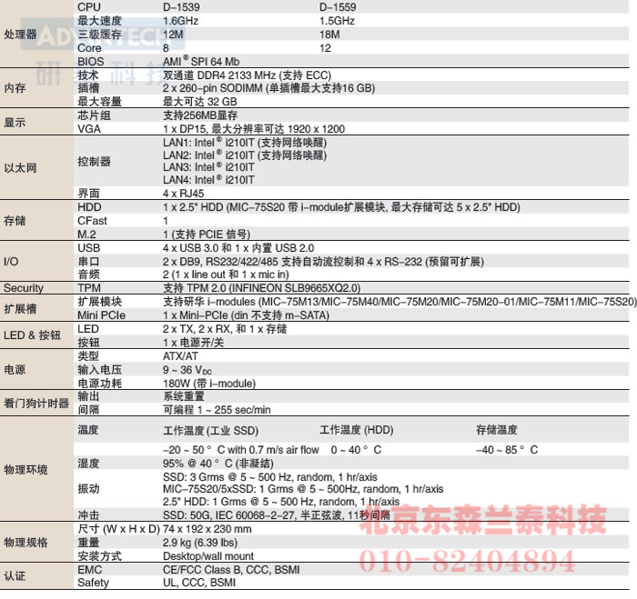 1 x 2.5" HDD, 1 x CFast插槽, 1 x M.2