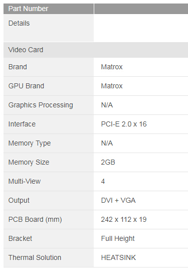 | 96VG-2G-PE-MA1 | Matrox MPX 2G PCIEx16 Generation 2 DVI+VGA Heatsink |