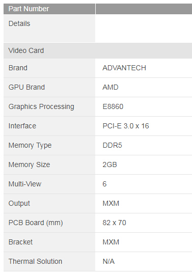 GFX-AE8860N16-5M E8860 2G DDR5 MXM DEFAULT: DVI*2 +DP*2