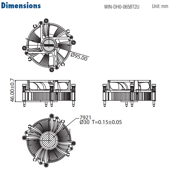 | WIN-DH0-065BT2U | Active 2U 65W CPU Cooler for Intel® Socket H (LGA1150/1155/1156) |