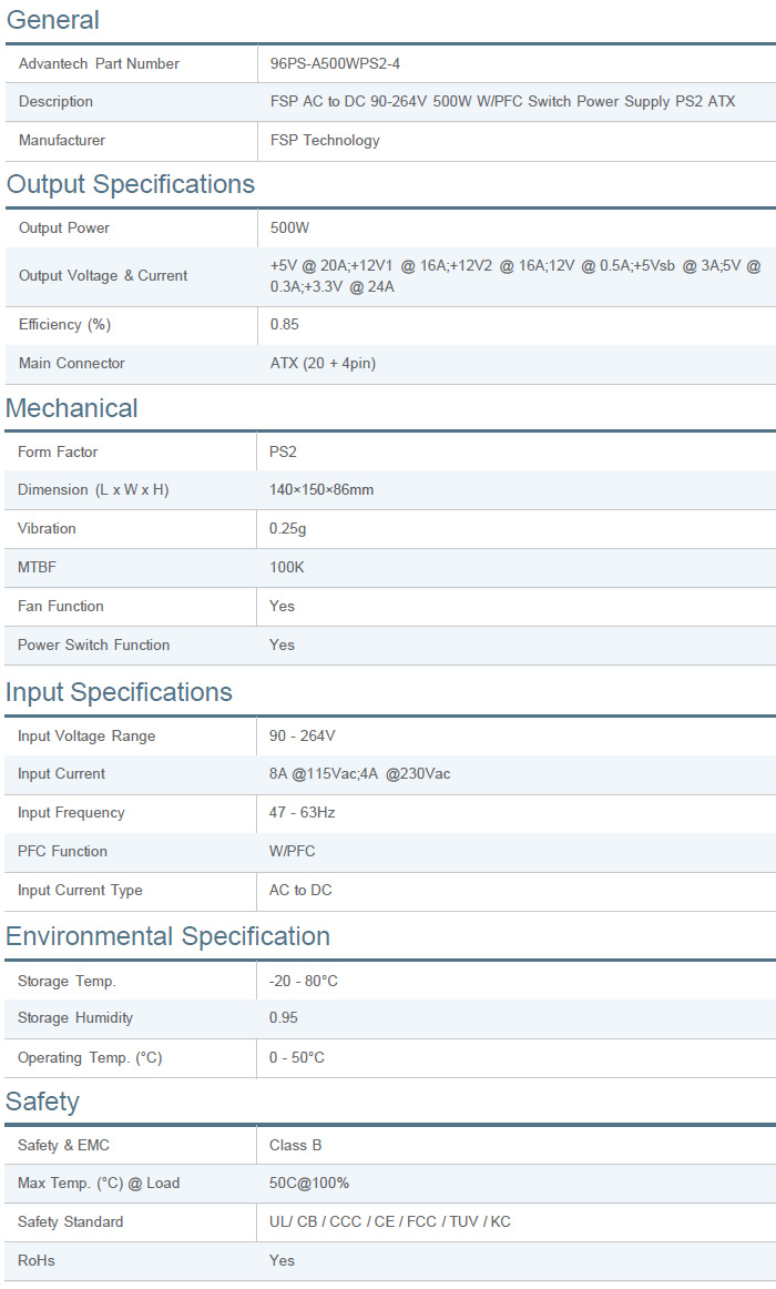 FSP AC to DC 90-264V 500W PS2 Switch Power Supply with PFC |