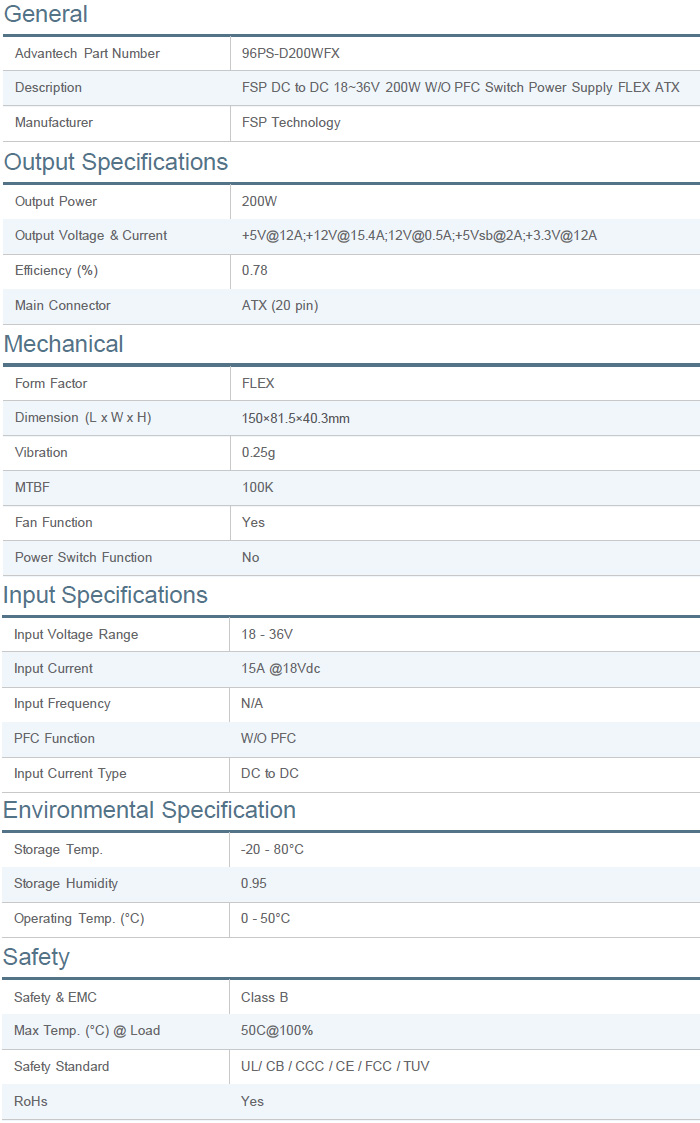 FSP DC to DC 18~-36V 200W FLEX ATX Switch Power Supply without PFC |