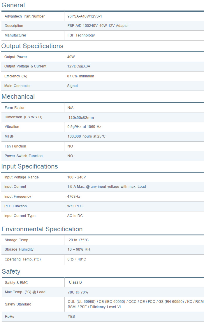 FSP Adapter AC to DC 100-240V 40W 12V C14 DC PLUG 180° |