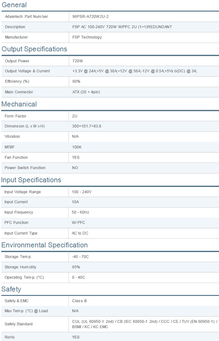 FSP AC to DC 100-240V 720W 2U (1+1)Redundant with PFC |