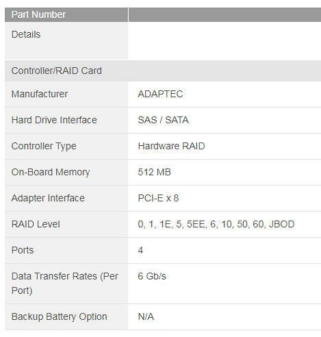 Adaptec 6405 SAS 4 Port 6GB/S PCIEX8