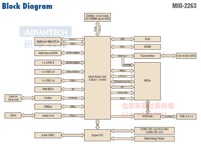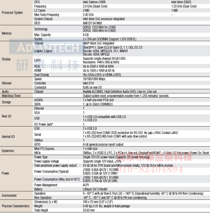 嵌入式Intel® Atom™ SoC E3825 & Celeron J1900四核处理器,最高支持8 GB DDR3L 1333 MHz