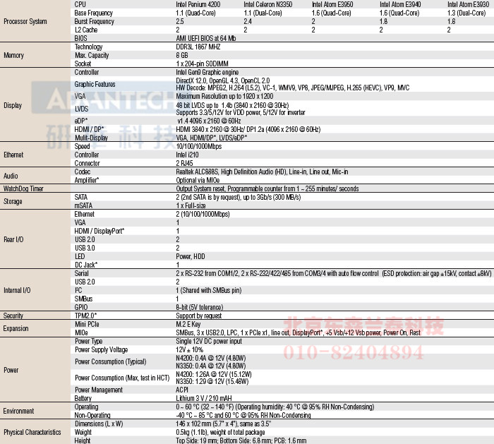 英特尔第六代凌动 Atom®奔腾N4200和赛扬N3350,Atom™E3950,E3940,E3930,3.5寸单板电脑 DDR3L 1867 MHz,高达16GB/3.5 吋 SBC 是 MIO-5xxx Compact 系列的其中一款产品,专为 9 瓦到 40 瓦的芯片组平台市场所开发。 从印刷电路板、选料到电源设计,这条特殊的 3.5 吋 SBC 产品线标榜支持宽温设计,并透过芯片内建的 iManager 软件提供发生重大事件时重新启动,以及电压瞬降期间自动系统还原能力。