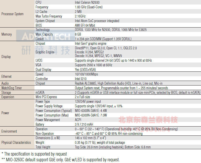 | MIO-6300N-S8A1E | Intel Celeron N2930 1.83G |