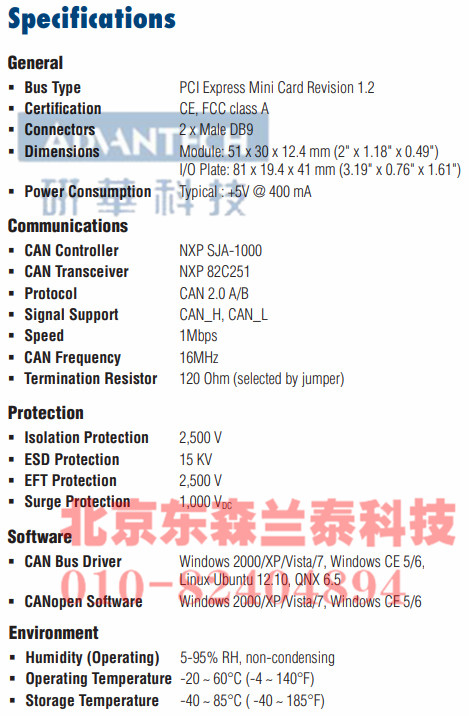 2端口隔离CANBus mPCIe, CANOpen, DB9 |