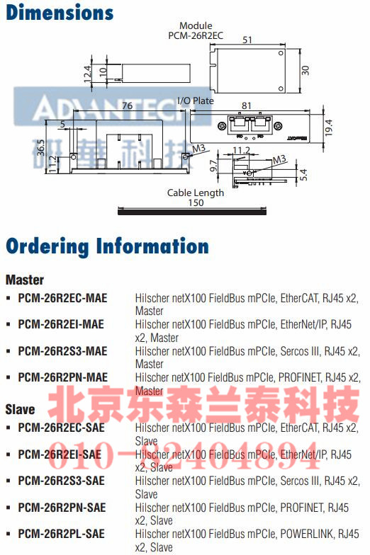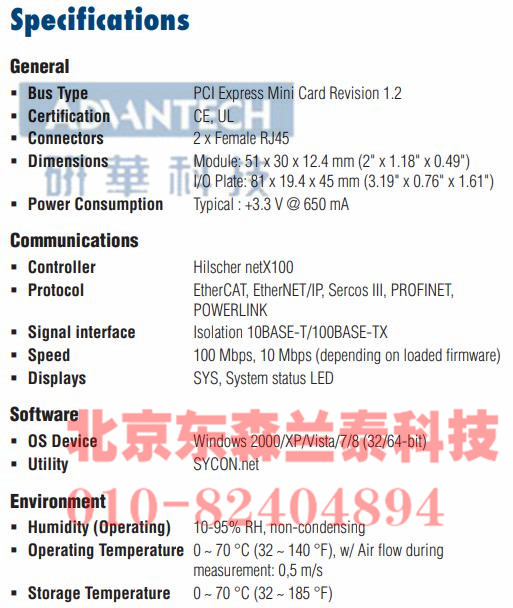 2端口 Hilscher netX100 现场总线 mPCIe, EtherCAT, RJ45 |