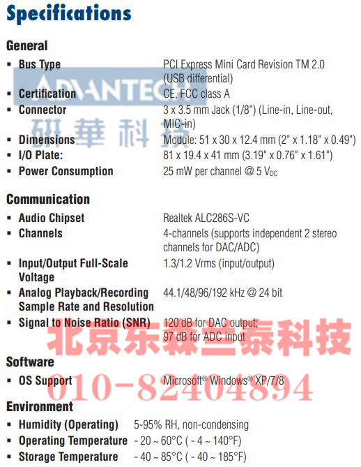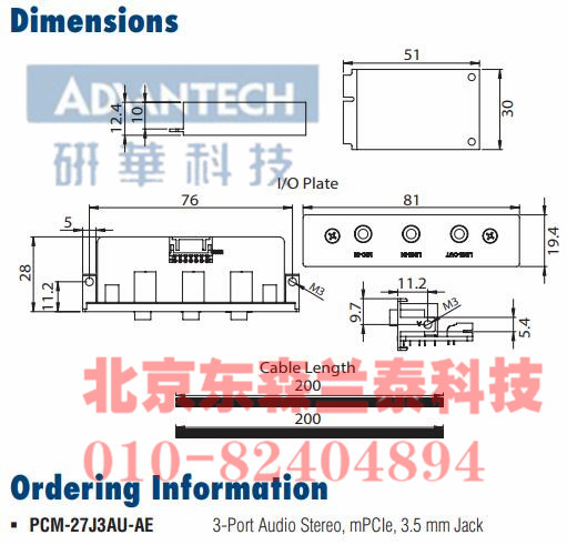 PCM-27J3AU 3端口立体声音频,mPCIe,3.5毫米插孔