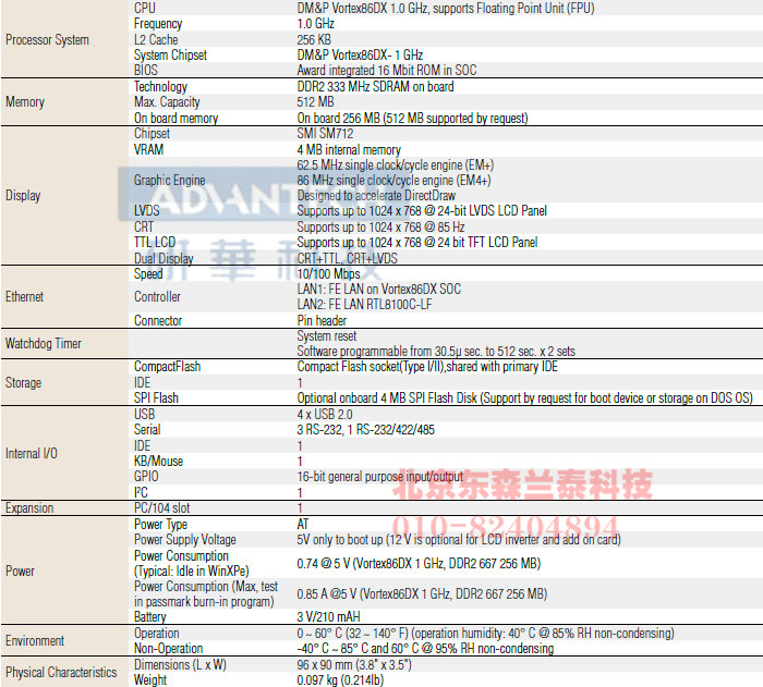 | PCM-3343F-256A1E | DM&P Vortex86DX 1 GHz |