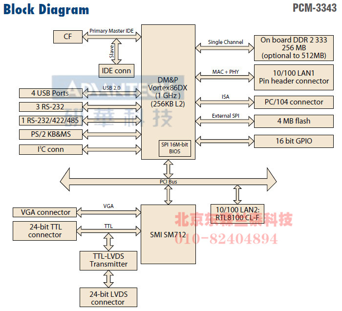 | PCM-3343L-256A1E | DM&P Vortex86DX 1 GHz |
