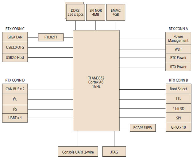 ROM-3310是基于TI AM3352 Cortex A8 1GHz RTX 2.0 的标准核心模块。AM3352具有多I/O、低功耗的特点,适用于工业自动化等领域。