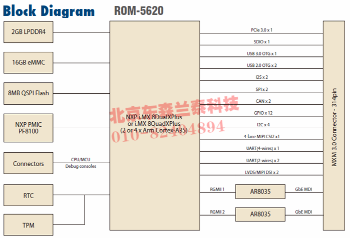 搭载NXP i.MX 8X处理器,支持双核/四核 NXP Arm cortexa35内核