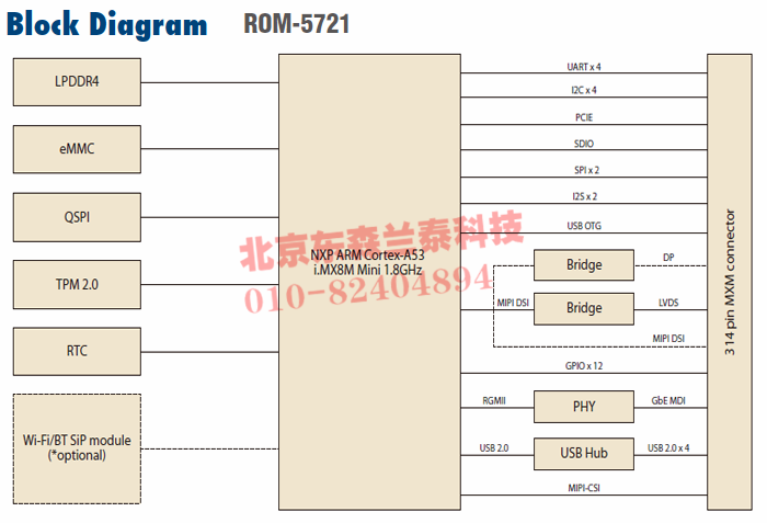 基于NXP i.MX8M Mini SMARC 2.0核心模块,研华ROM-5721 SMARC 2.0核心模块采用恩智浦NXP i.MX8M Mini SOC处理器,包含4*Arm Cortex-A53 和1*Cortex-M4实时运算内核,以及Vivante GC320 , GC NanoUltra 3D 图像引擎.