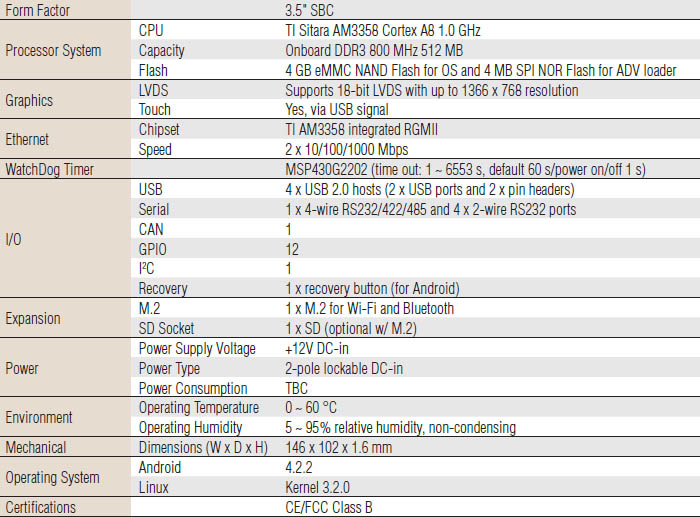 | RSB-4221CS-MCA1E | TI AM3358 1 GHz | 512 MB |