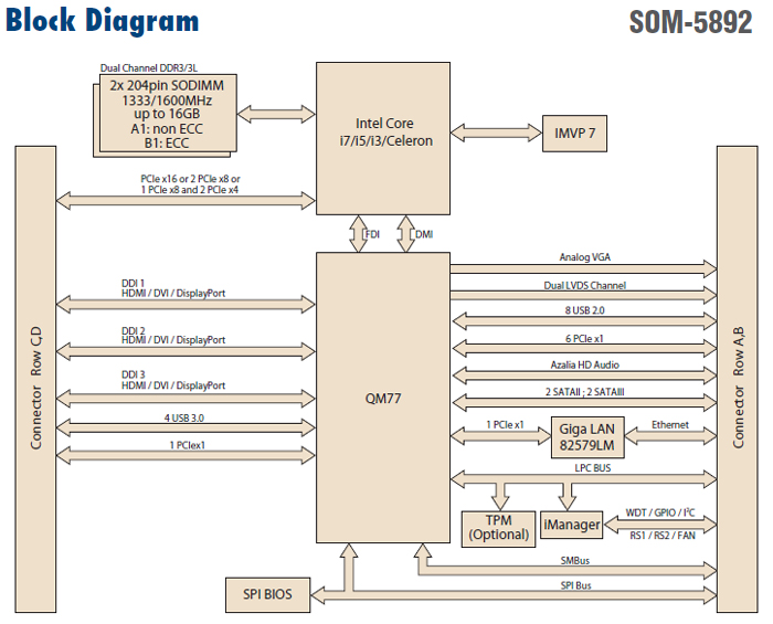| SOM-5892FG-U7B1E | Core™ i5-3610ME 2.7 GHz | 0 ~60° C |