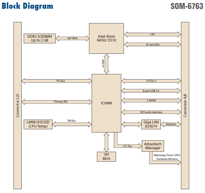 SOM-6763NZ-S6A1E Atom N450 1.66 GHz 18-bit -20 ~ 80° C
