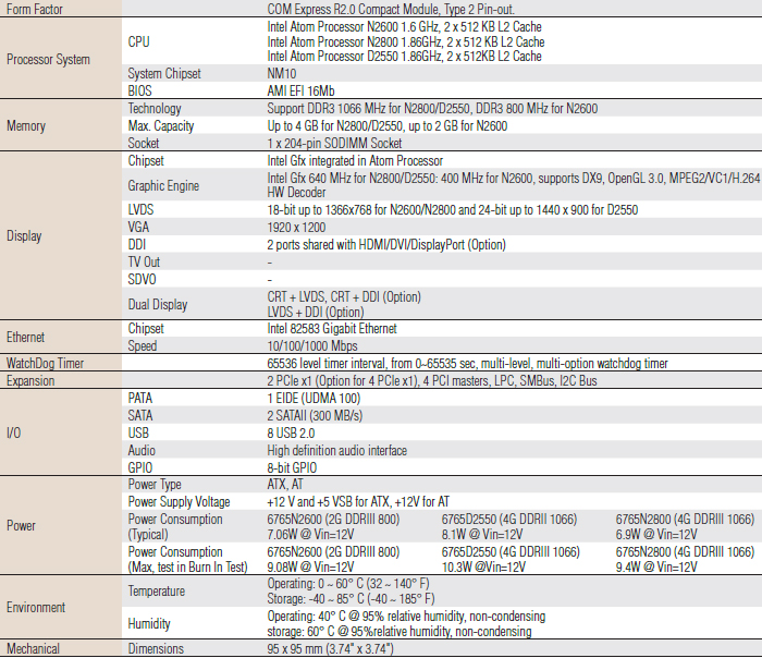 Embedded Intel® Atom™ Processor N2600/N2800/D2550 + NM10