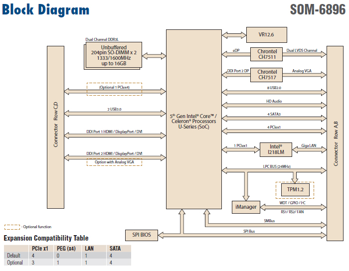 | SOM-6896C7Z2-U2A1E | Intel i7-5650U | -40 ~85° C |