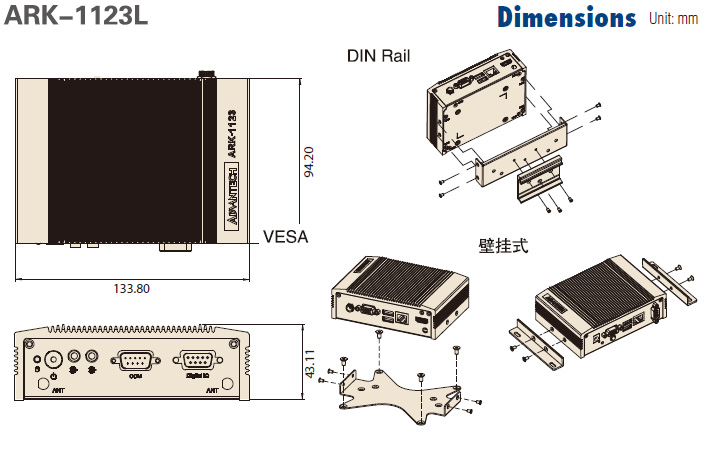 VESA / DIN Rail / 壁挂式等多种安装方式