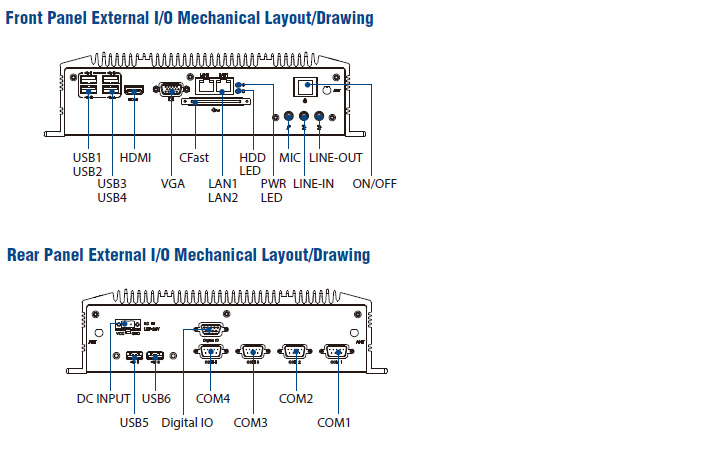 最高支持2 GbE, 6 x USB 2.0和4 x COM接口
