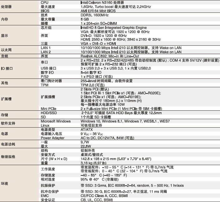 Intel® Celeron™ N3160 无风扇嵌入式工控机,带丰富扩展接口,和2个 2.5" 可插拔HDD硬盘