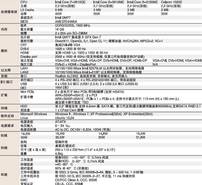 | ARK-3500P-00A1E | Intel QM77 2*PCI |
