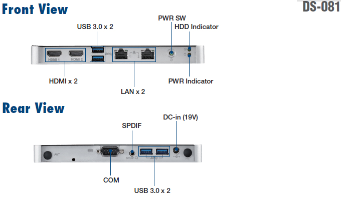 Measuring at 19 mm thick, DS-081 is the world’s slimmest digital signage player powered by 6th Generation Intel® Core™ i3/i5 processors. This thin-and-powerful signage player is equipped with 2x HDMI display which is capable to achieve up to 4096 x 2304 UHD resolution, and delivers a premium visual experience when graphics performance really matters. Windows® Embedded OS, Linux are supported, and Advantech WebAccess/IMM, Web-based content management software, is also free on offer. We’ve designed the DS-081 in the smallest possible form factor, for optimized performance.