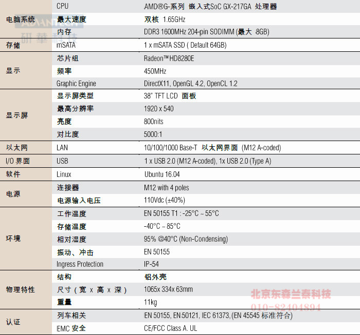EN 50155 AMD® GX-217GA 38” 无风扇设计之列车车辆 Panel PC