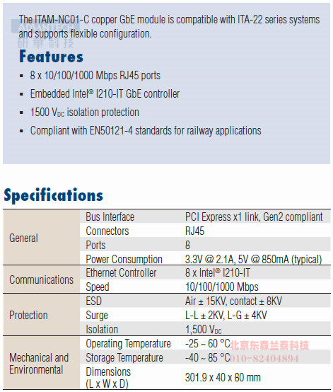 | ITA-EM-NC21-C0A1E | 8-port GbE ITAM module with RJ45 connector |