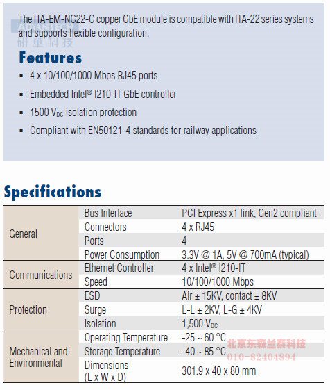 | ITA-EM-NC22-C0A1E | 4-port GbE ITAM module with RJ45 connector |