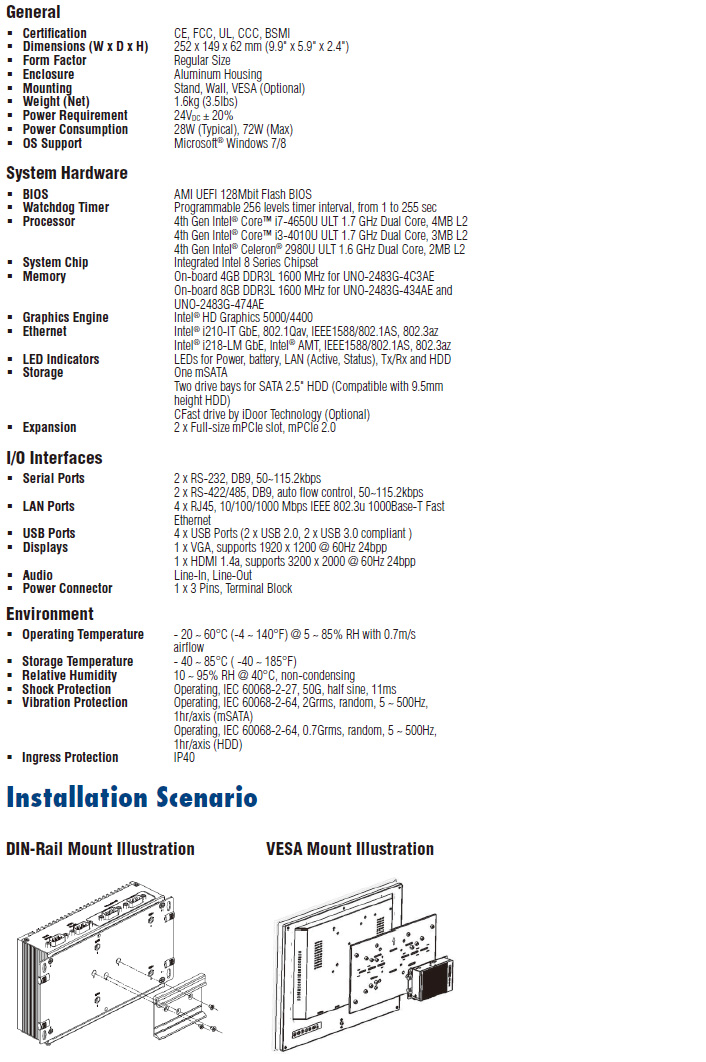 | UNO-2483G-474AE | Intel® Core™ i7-4650U ULT 1.7GHz, 8GB, 4 x LANs, 2 x mPCIe |
