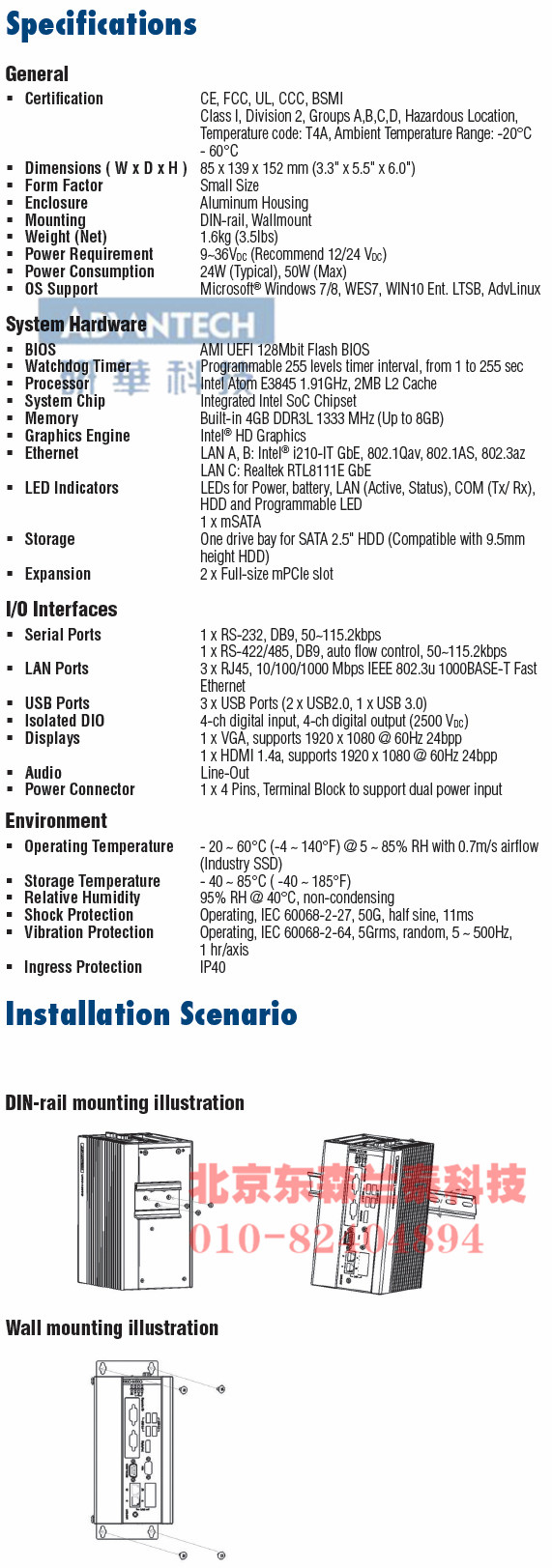 Class I, Division 2 Certified Intel Atom Quad-Core 1.91GHz, 4GB, 3 x LAN, 2 mPCIe, iDoor |