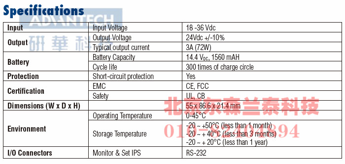 18-36 VDC input/24 VDC output, Uninterruptible Power Supply Module (Including control & power cable) |