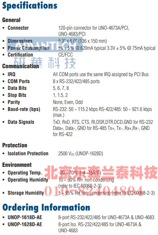 | UNOP-1618D | 8路RS-232/422/485串口卡 |
