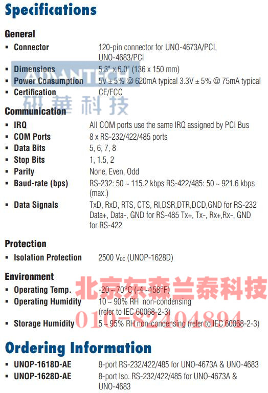| UNOP-1628D | 信道隔离的8路RS-232/422/485串口卡 |