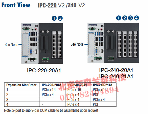 Note: 2-port D-sub 9-pin COM cable to be assembled upon request |