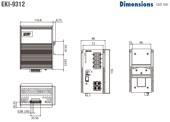 | EKI-9312-C0ID42E | Layer 2 Fastpath, 8xGbE 100/1000Base-T + 4x GbE SFP w/ 24/48 VDC Redundant Power Input |