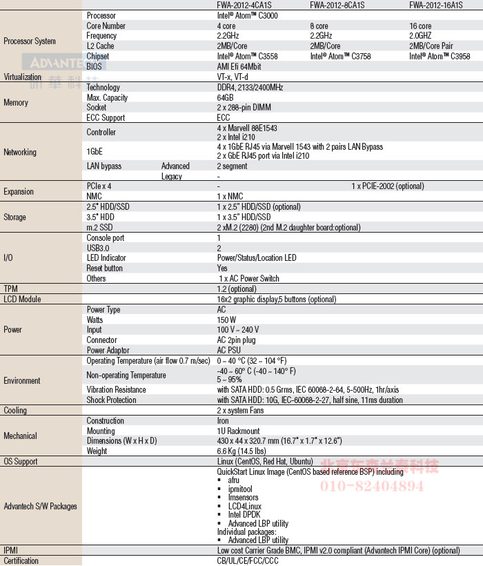 | FWA-2012-16A1S | Intel® Xeon®Atom C3598 |
