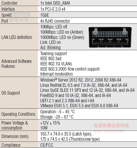NMC-0107-04CBSA1  Thumbscrew  4-ports 1GbE RJ45 w/ 1x Intel i350_AM4 chip NMC ( Legacy LAN Bypass)