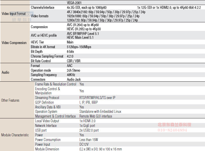 VEGA-2001 4K HEVC/AVC Real-Time Encoder and Streaming Module