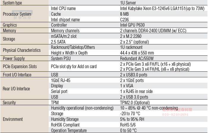 VEGA-7010-0A00E  VEGA-7010 Kabylake-S 2-PSU Standard Server