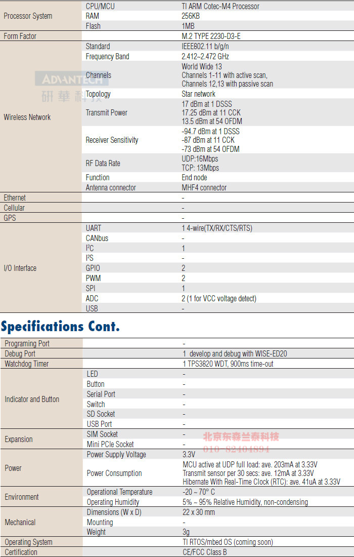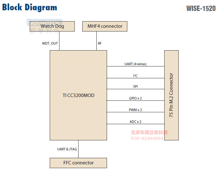 WISE-1520ITB-TDA1E WISE1520 M2.COM Wi-Fi module with TI-RTOS -20 ~ 70° C