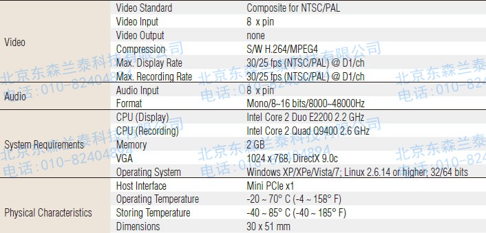 | DVP-7041E | 8-ch H.264/MPEG4 MiniPCIe Video Capture Card with SDK |